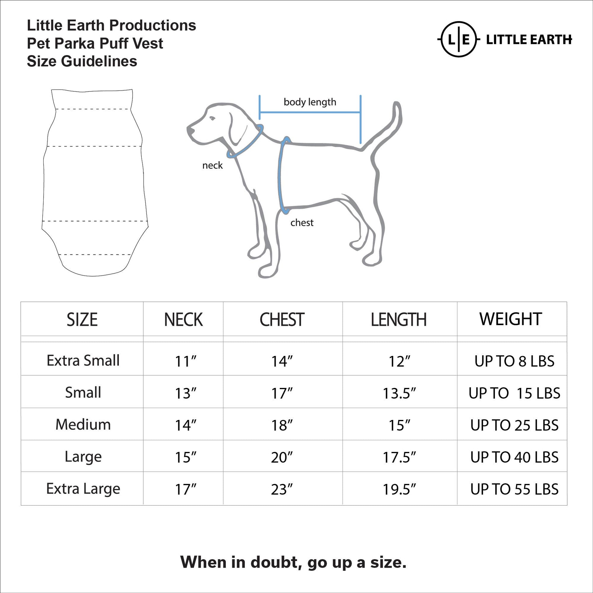 This soft, snuggly Kansas City Chiefs Puffer Vest will keep your pet warm on winter walks while showing your team pride! The water-repellent quilted shell comes in your team's color and has a soft fleece lining. This officially licensed puffer vest has a retro ski parka look, with full-color team logo and features a hook and loop closure at the center front ensures a comfortable fit for your loyal fan. Hand wash and hang dry.